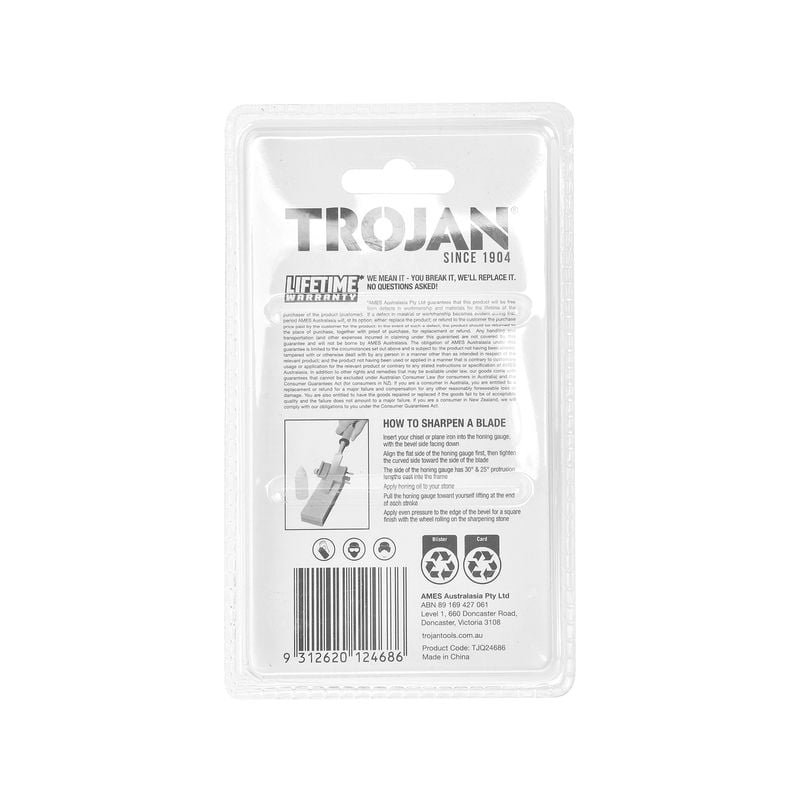 The Trojan Honing Gauge is ideal for sharpening chisels and plane blades, featuring 30° & 25° protrusion lengths cast into the frame for easy setting of the bevel angles. The Trojan Honing Gauge is suitable for 6mm-50mm Chisels & 35mm-82mm plane Blades